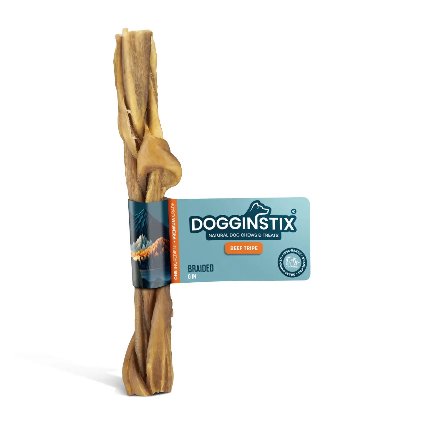 Explore Dogginstix's 6" Beef Tripe, crafted from natural beef tripe for a protein-rich, long-lasting, odor-free treat. Tripe varies naturally in color, reflecting its pure, unprocessed nature.
