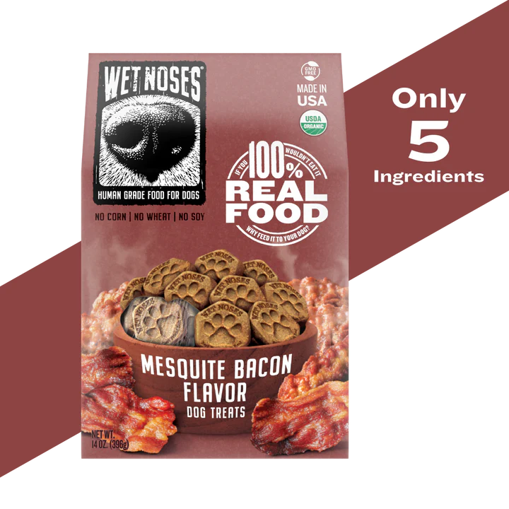 Wet Noses Human Grade Mesquite Bacon Treats offer the kind of quality you'd expect for yourself—because your dog deserves it. Made just north of Seattle, WA, these treats feature real bacon with no artificial additives, colors, or preservatives. Crafted by people who care about your dog’s health and the planet, these treats are easy to digest and packed with smoky, savory flavor. Perfect for everyday snacking or showing your dog some extra love, they deliver human-grade quality in every bite.