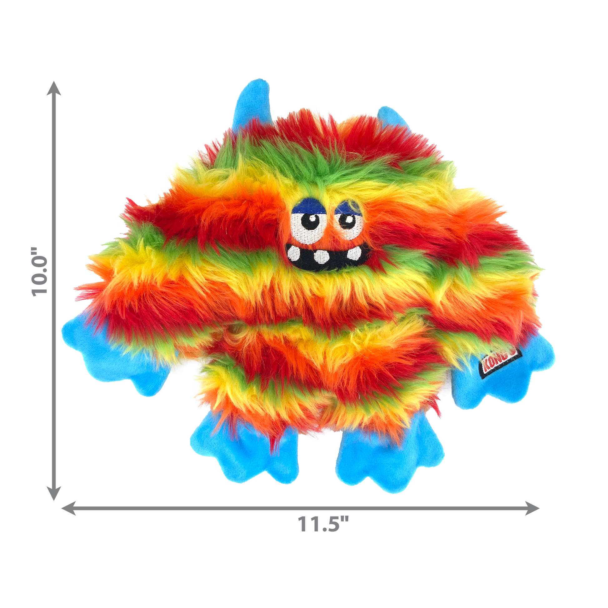 KONG Frizzles’ lush, long fur makes these friendly fiends irresistible to curious pups itching for indoor adventures—and unbelievably soft snuggles. These shaggy sidekicks satisfy fetching and (gentle) chewing instincts. Not-so-scary squeaks and crinkles keep the action going. All sized dogs can grab the flat bodies.
