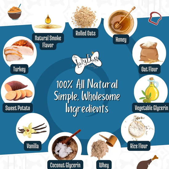 Rolled Oats, Honey, *Palm Oil, Whey, Vanilla, Rice Flour, Natural Turkey, Sweet Potato & Natural Smoke Flavor.