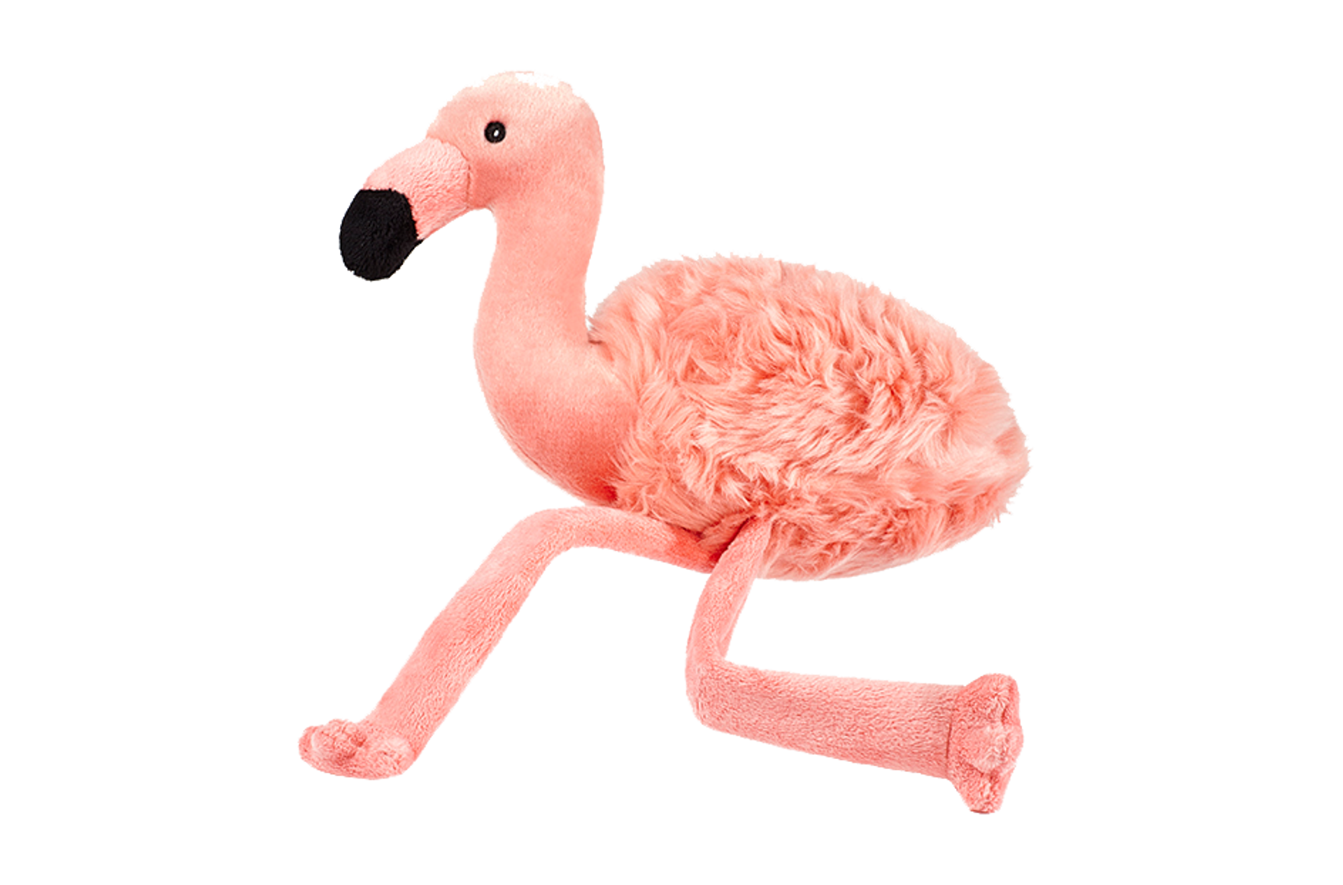 A group of flamingos is called a flamboyance, and Lola lives up to just that. She’s a pretty pink lady with stunning plush feathers. Her long legs and neck are perfect for dogs who want to shake and toss their toys