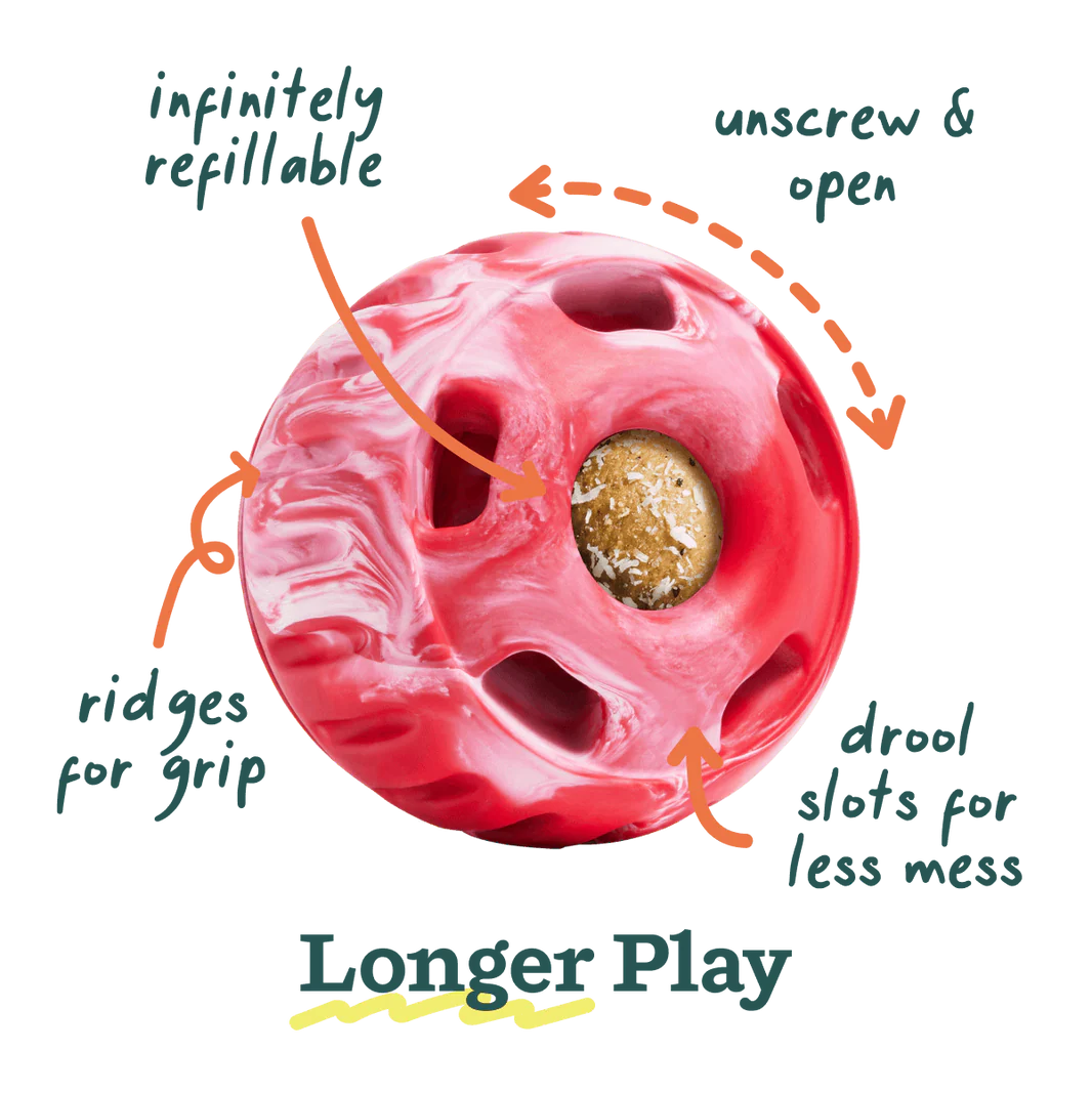 Our large Pupsicle is 3.6" in diameter and 2.8" tall, with the hole in the middle (where your pup will try get at the treat inside) is about 1" in diameter.