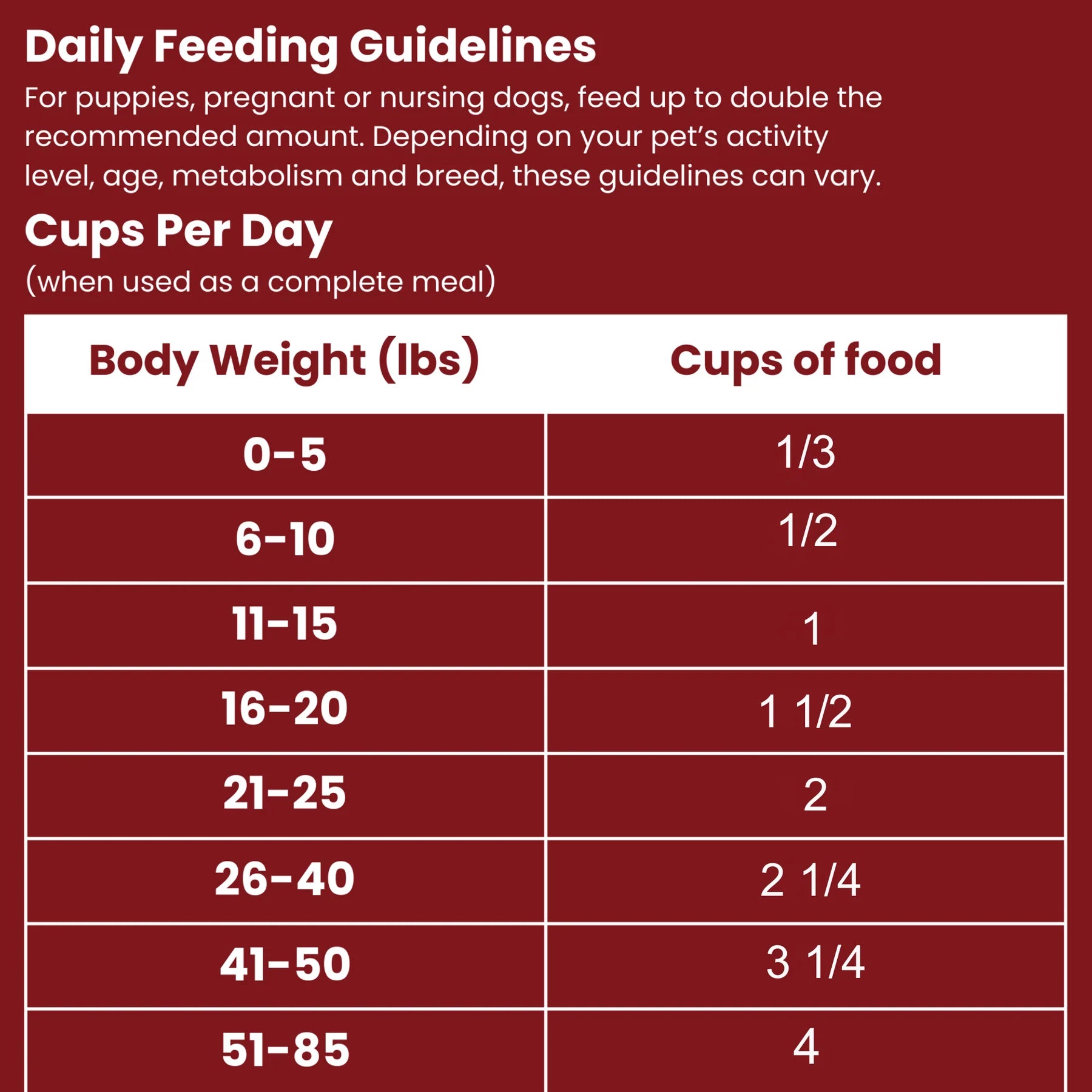 1 lb of our freeze-dried food equals 4 lbs of non-freeze-dried food, providing a concentrated nutritional value!
