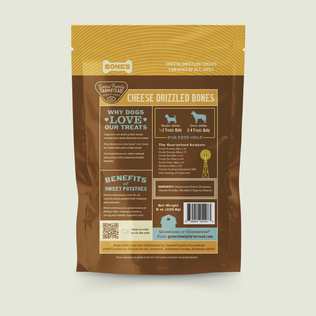 Indulge your pup with our Cheese-Covered Sweet Potato Dog Bones! Made with all-natural ingredients, these tasty treats combine the goodness of sweet potatoes and a mouthwatering cheese coating your dog will love!