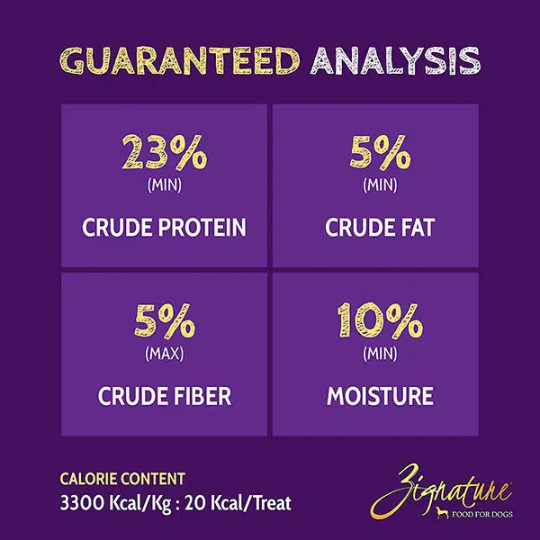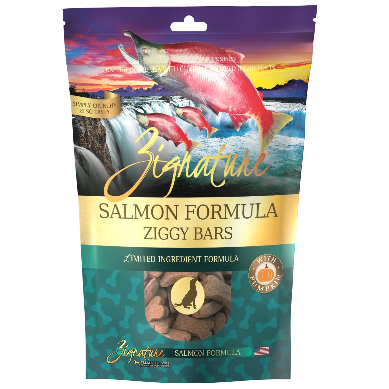 Zignature Salmon Ziggy Bars make training time more fun! These tasty treats are formulated with the same limited ingredient philosophy as our dry and canned foods and include healthy, wholesome ingredients like pumpkin to make treat time much more enjoyable for you and your furry friend!
